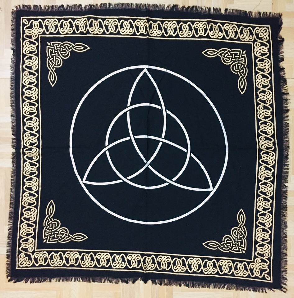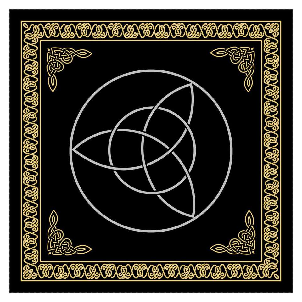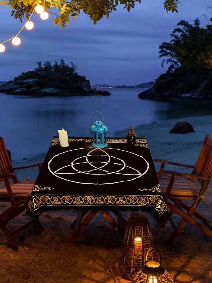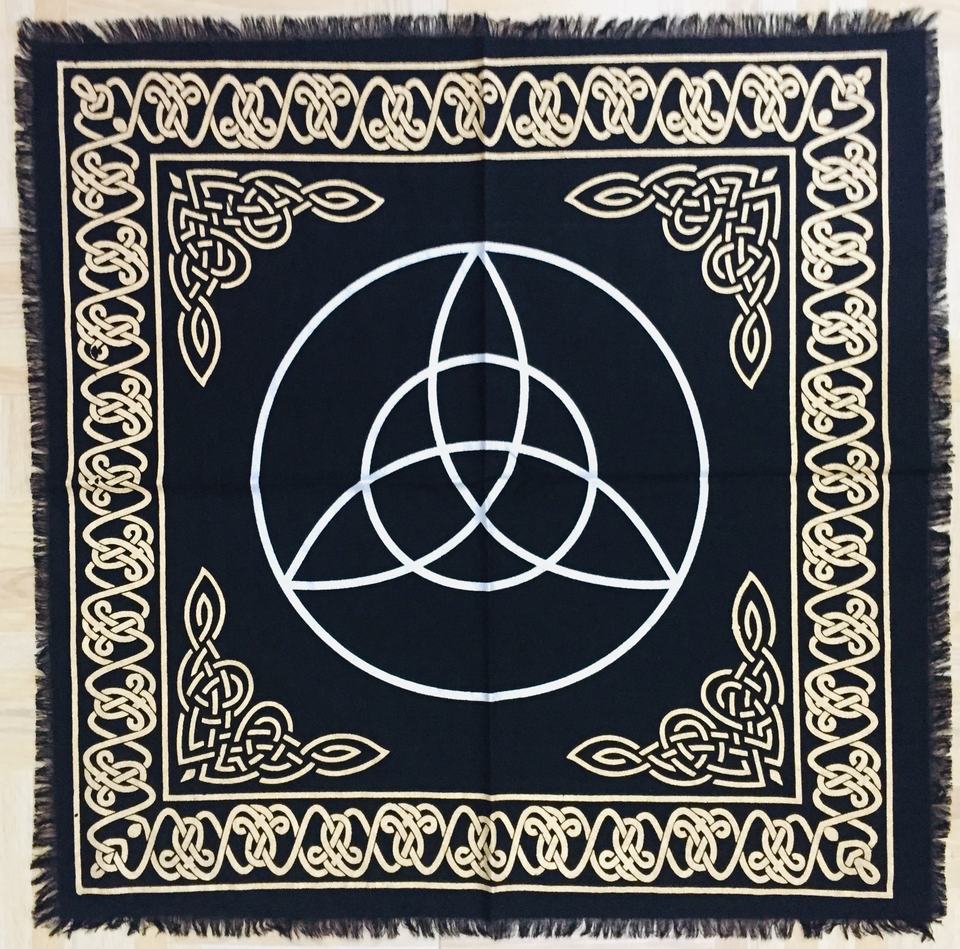 ผ้าคลุมโต๊ะสามผืนผ้าคอตตอนทรงสี่เหลี่ยม24x24นิ้วสีดำทองเปลี่ยน wiccan