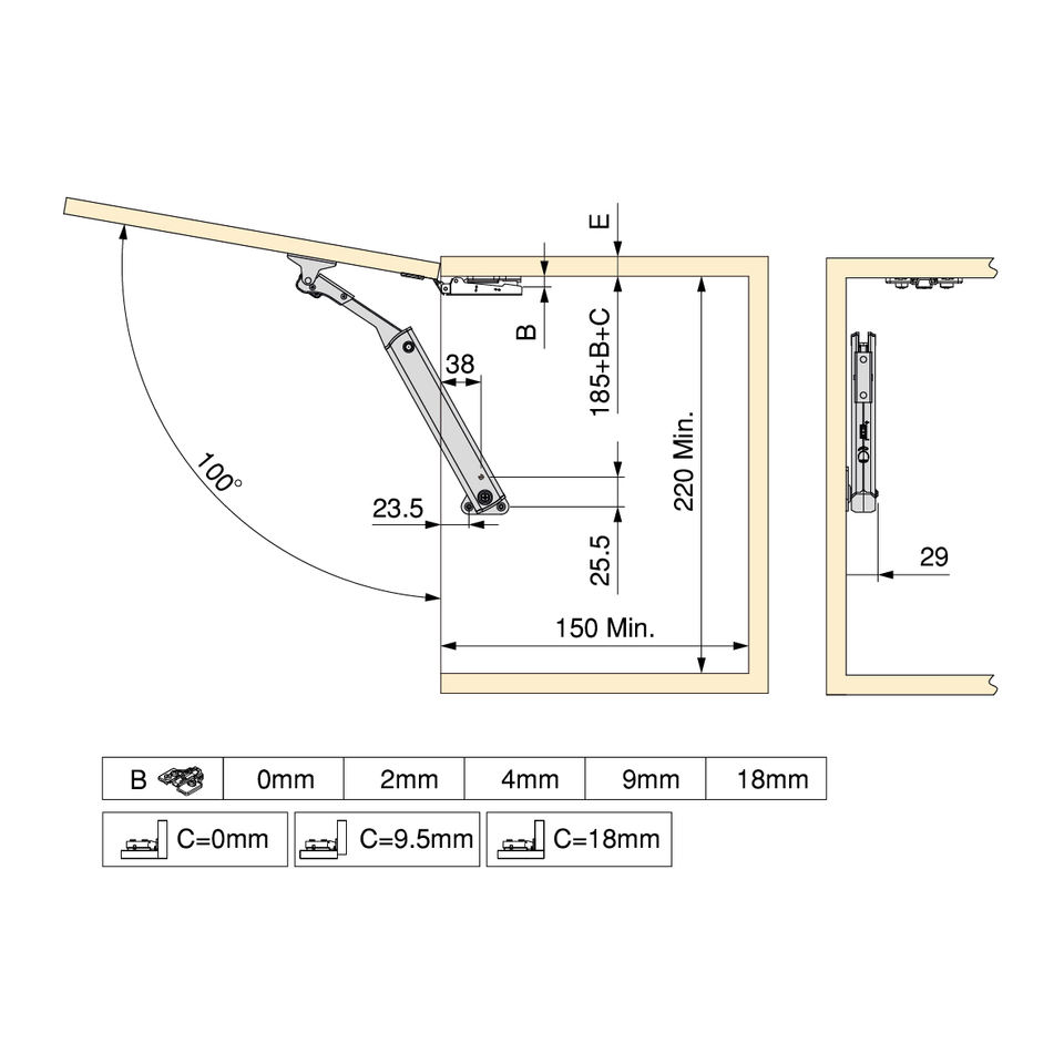 Altius One Concealed Door Closer Aluminum Alloy Lifting Door Stay Force Range 576-959 Steel Titanium 1214552 EMUCA