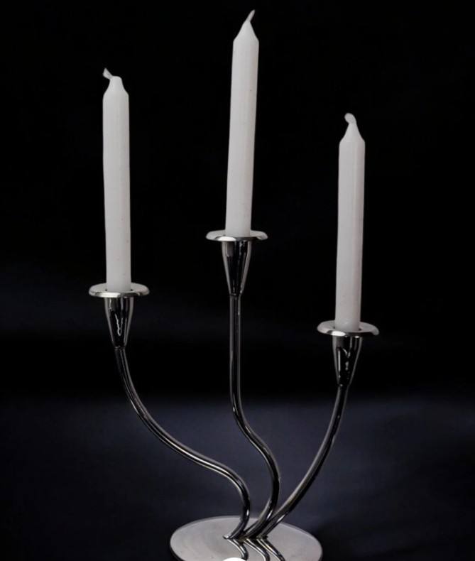 เชิงเทียนอลูมิเนียม3เปลวไฟทำด้วยมือเป็นมิตรกับสิ่งแวดล้อมของตกแต่งที่หรูหราสำหรับบ้านโรงแรมงานแต่งงานโต๊ะกลาง
