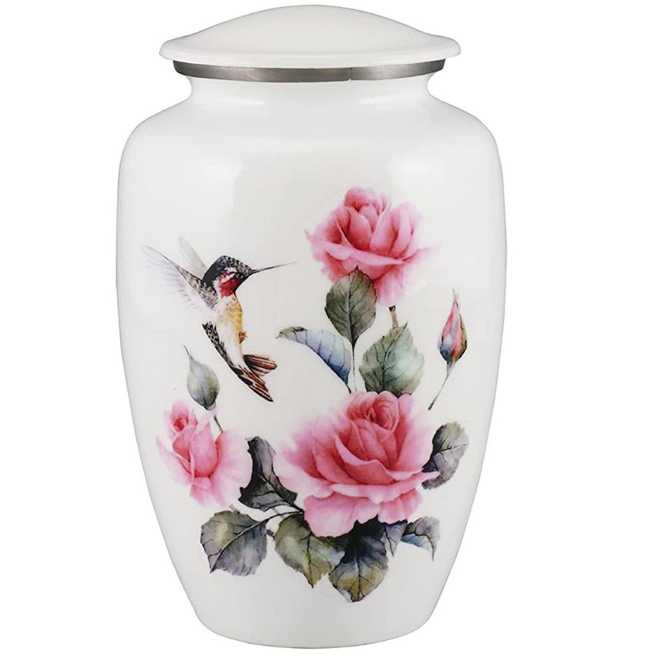 โกศเผาศพอลูมิเนียมสำหรับผู้ใหญ่ที่มีการแกะสลักพิวเตอร์และหินอ่อนสีแดงโกศโลหะสำเร็จรูปสำหรับเถ้ากระดูกมนุษย์