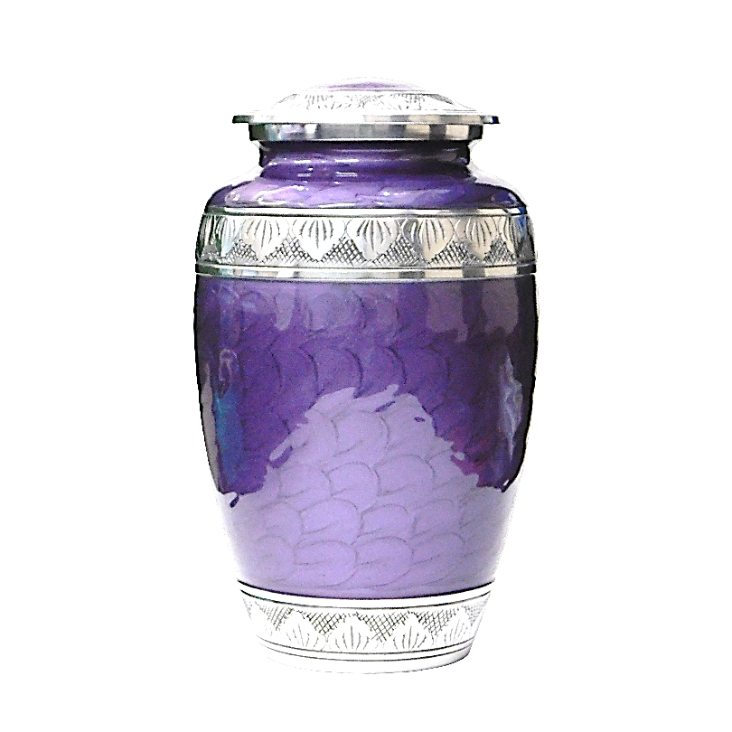 โกศบรรจุอัฐิสำหรับผู้ใหญ่ทำจากอะลูมิเนียม พร้อมงานแกะสลักเคลือบด้วยดีบุกและเคลือบสีม่วงเข้ม อุปกรณ์งานศพสำหรับบรรจุอัฐิมนุษย์
