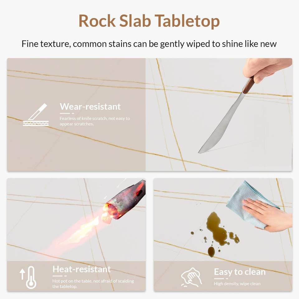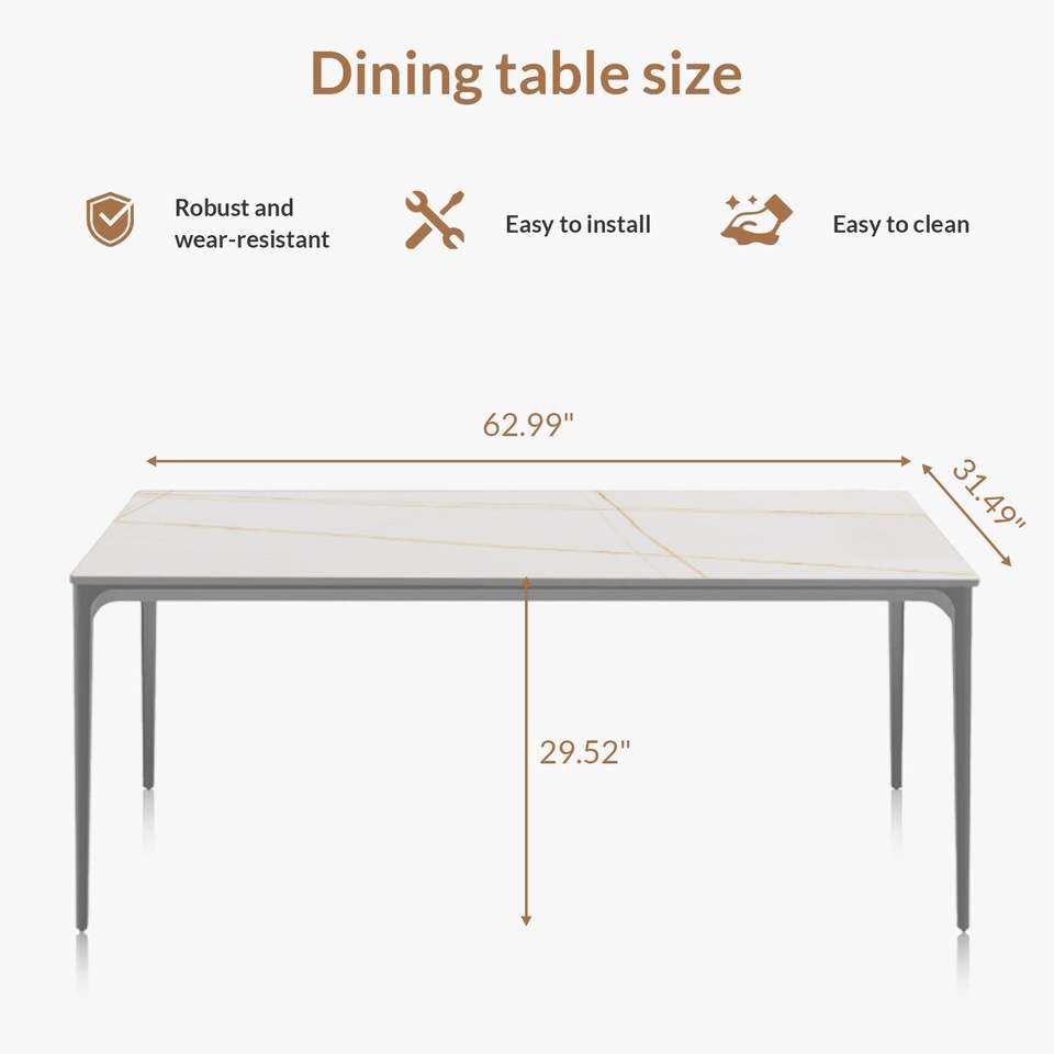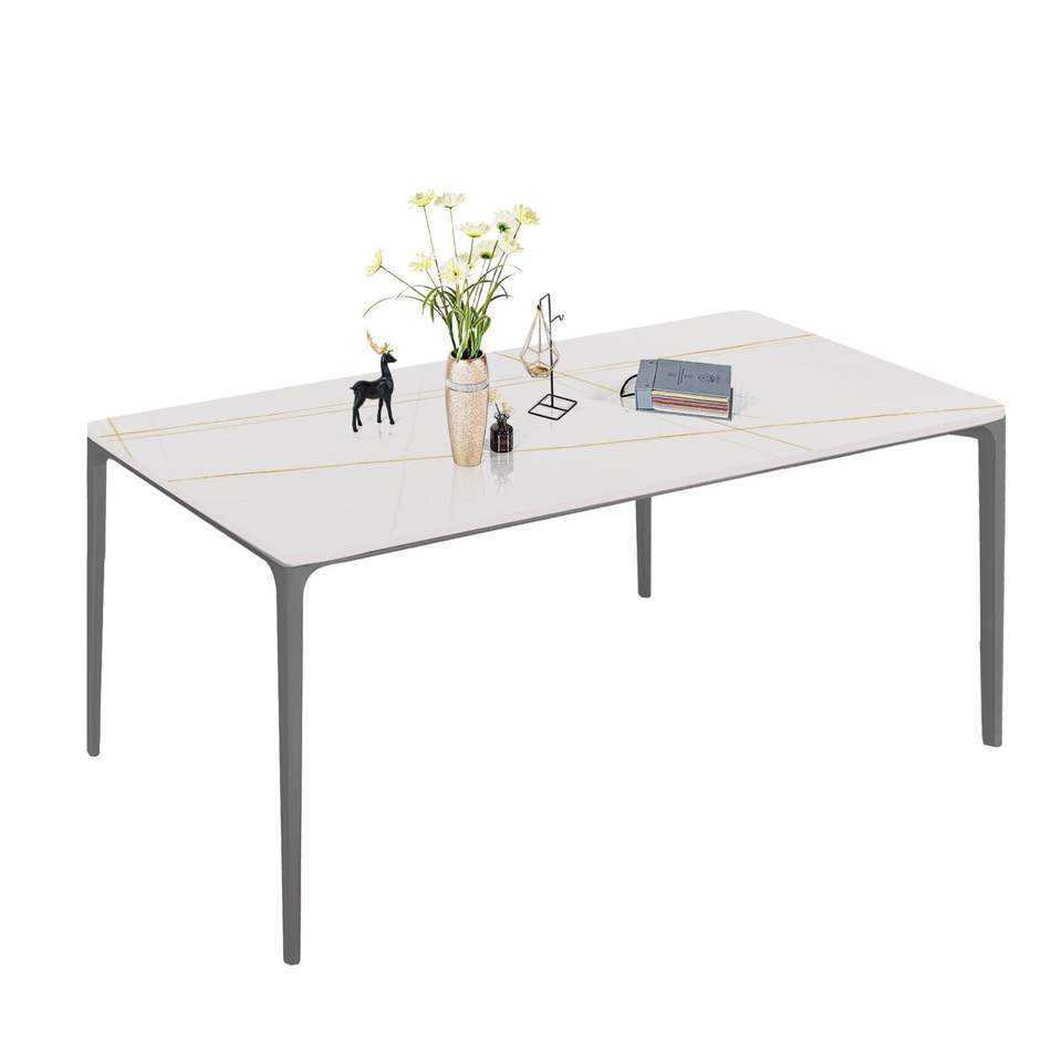 โต๊ะรับประทานอาหารขาอะลูมิเนียมอัลลอยสีเทา ขนาด 63 นิ้ว ท็อปหินเผา/หินอ่อน/พอร์ซเลน สำหรับห้องครัว/ห้องนั่งเล่น โต๊ะรับประทานอาหารดีไซน์หรูหรา