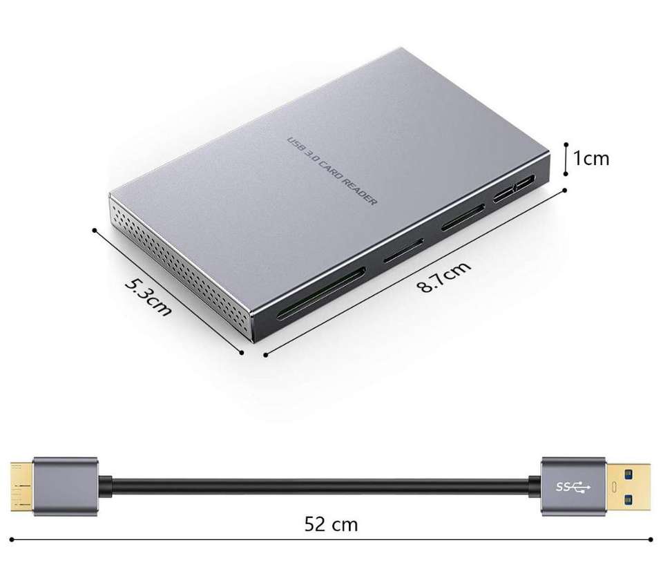 เครื่องอ่านการ์ด USB 3.0 อลูมิเนียมอัลลอยด์ รองรับ SD, MicroSD, TF, CF, MS และ M2