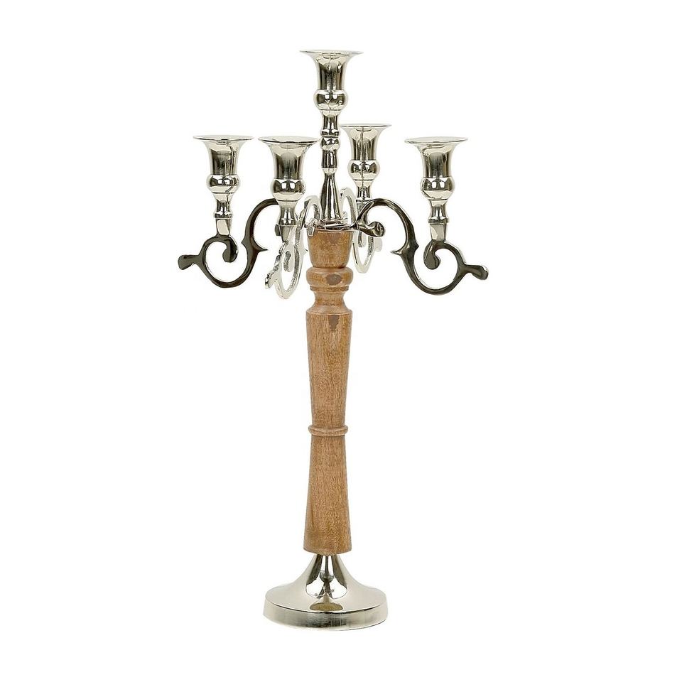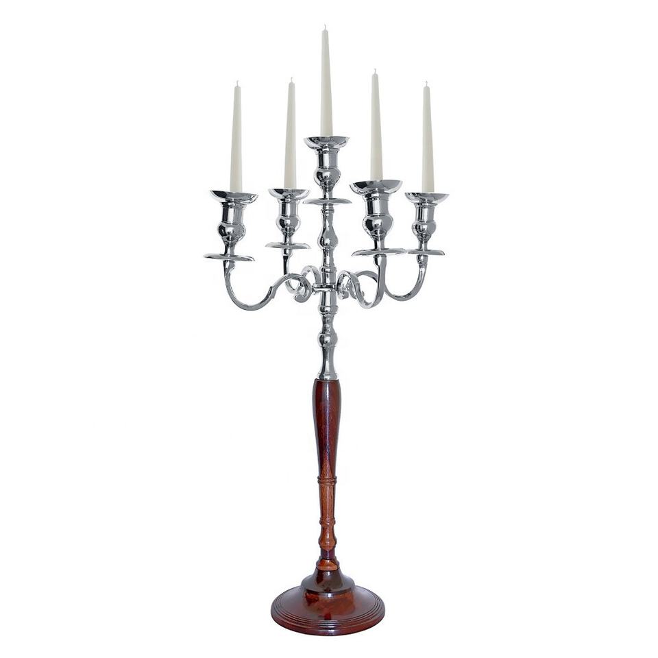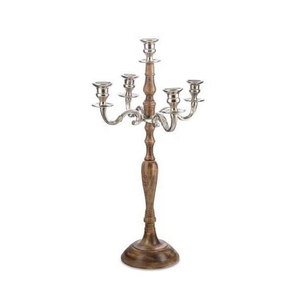 เชิงเทียนอะลูมิเนียมและเสาไม้3แขนเชิงเทียนสั่งทำของตกแต่งงานแต่งงานงานตกแต่งด้วยเงินและทอง