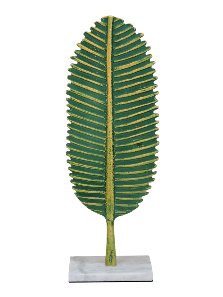 ประติมากรรมตกแต่งโต๊ะรูปใบกล้วยอะลูมิเนียมพร้อมฐานหินอ่อน - รูปปั้นพืชเขตร้อนสำหรับตกแต่งชั้นวางของในบ้านและสำนักงาน