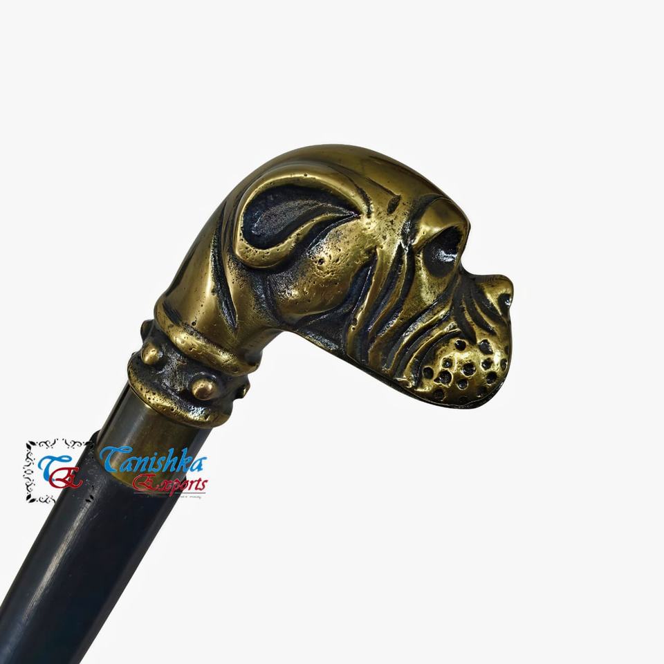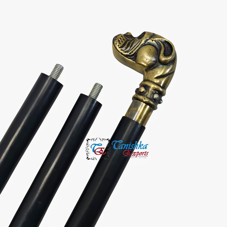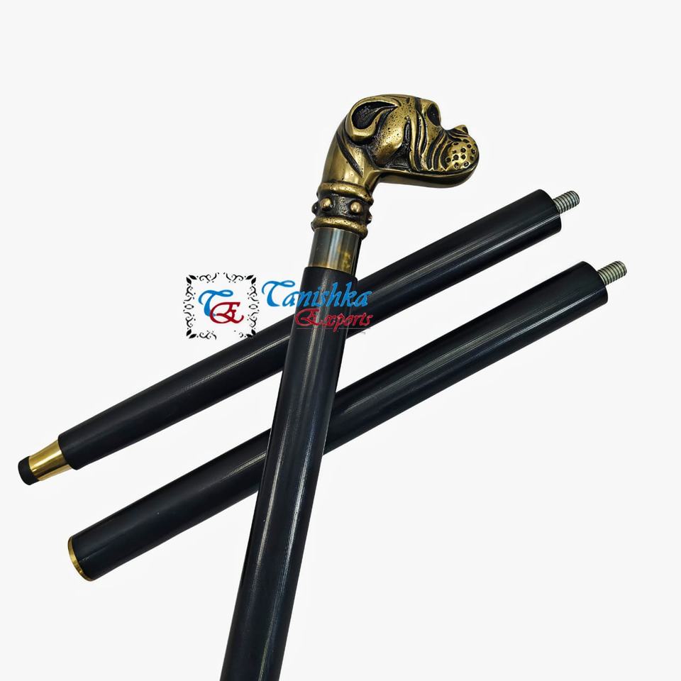 Aluminium Brass Nautical Modern Pitbull Handle Three Fold Black Wooden Handmade Walking Stick for Old Age Men & Women