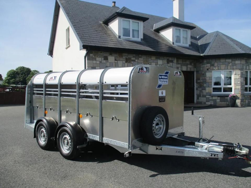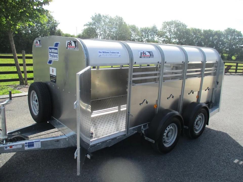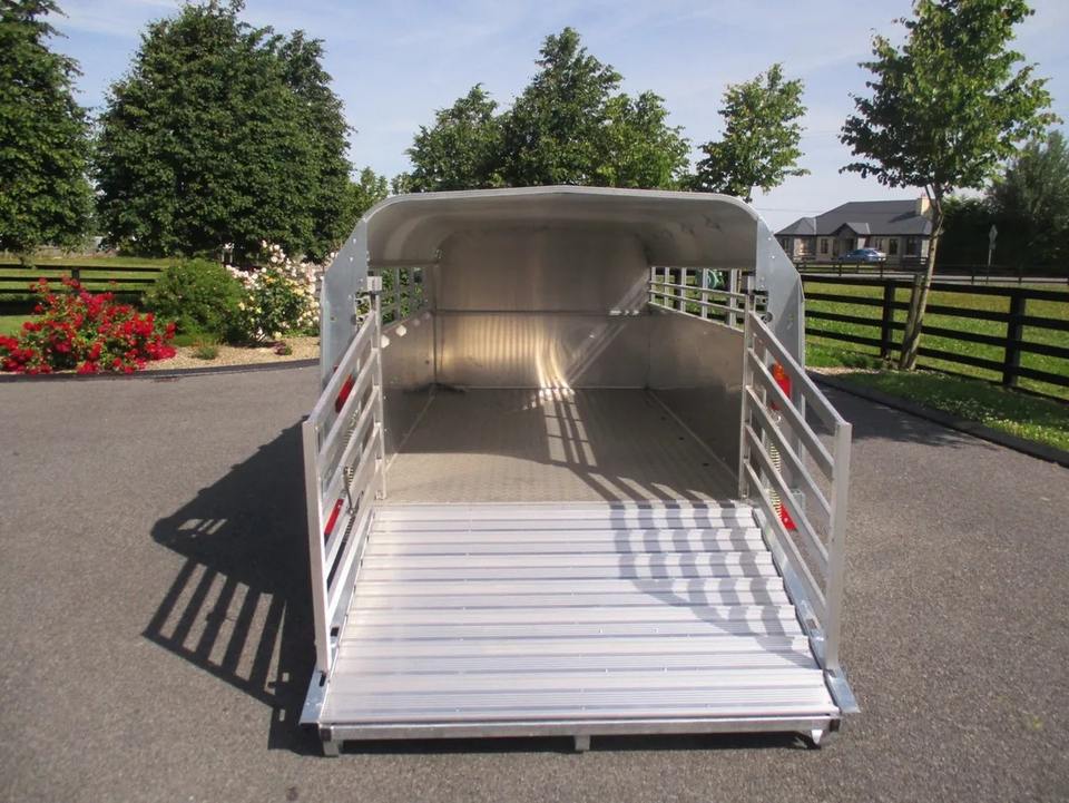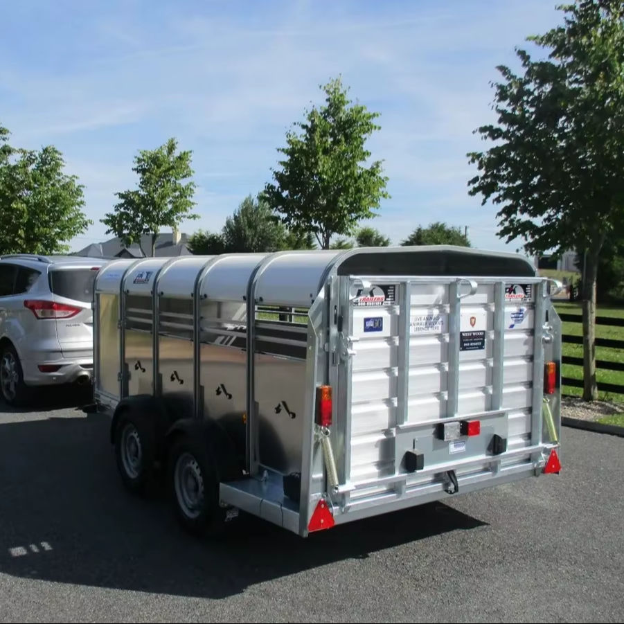 รถพ่วงแผ่นป้ายเชคเกอร์อะลูมิเนียมสำหรับปศุสัตว์ที่มีช่องระบายอากาศด้านข้างขนาดใหญ่ประตูตรวจสอบด้านหน้าสำหรับการโหลดแกะหมู