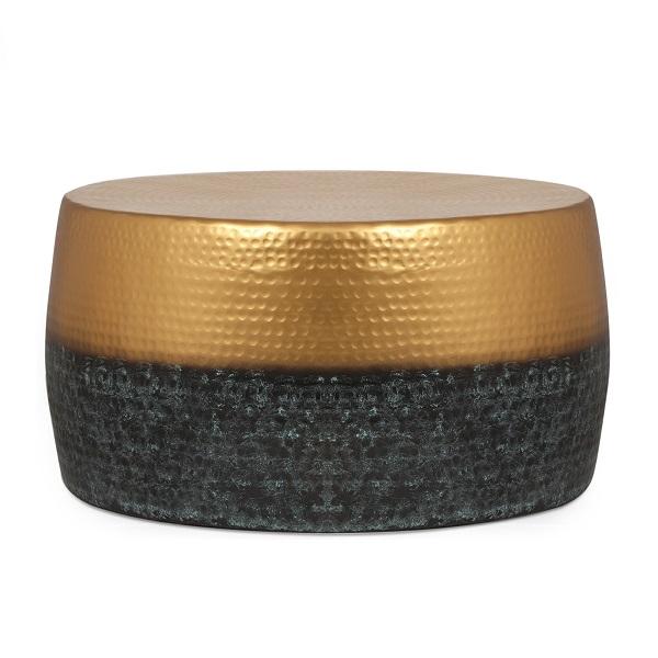 โต๊ะกาแฟอลูมิเนียมสําหรับเฟอร์นิเจอร์ห้องนั่งเล่น โต๊ะกาแฟกลองโลหะ โต๊ะกาแฟสวน ดีไซน์จุดด้าน
