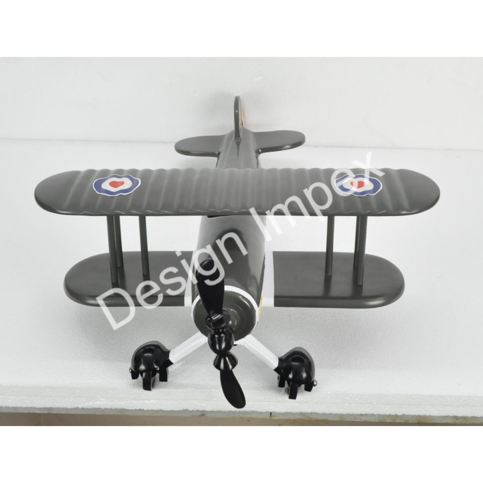 โมเดลเครื่องบินบิเพลนใบพัดสีดำตกแต่งด้วยอะลูมิเนียม ธีมชมรมนักบิน ดีไซน์ OEM รุ่นล่าสุด
