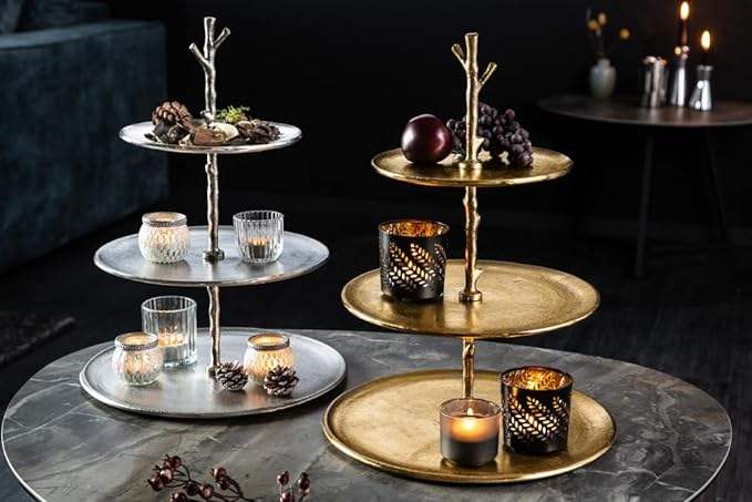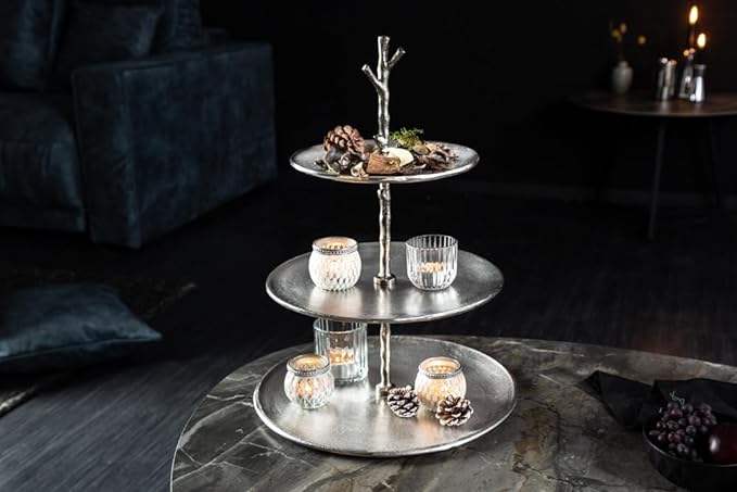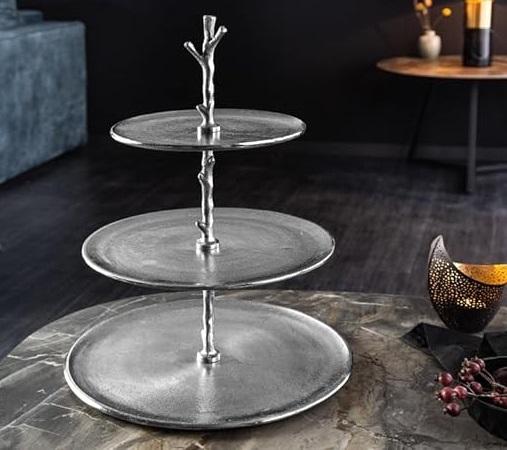 ขาตั้งเค้กอลูมิเนียมหรูหราบทคัดย่อ 48 ซม. อลูมิเนียมสีเงินสามระดับเสิร์ฟชามผลไม้ 3 ชั้นวาง