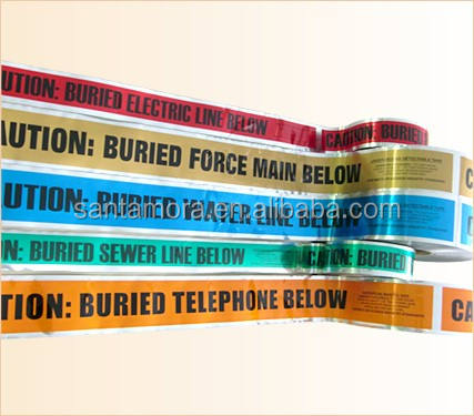 เทปเตือนแบบตรวจจับได้สำหรับสายเคเบิลใต้ดิน316สแตนเลสสตีลความกว้าง15ซม. ความหนา100um พลาสติก PE