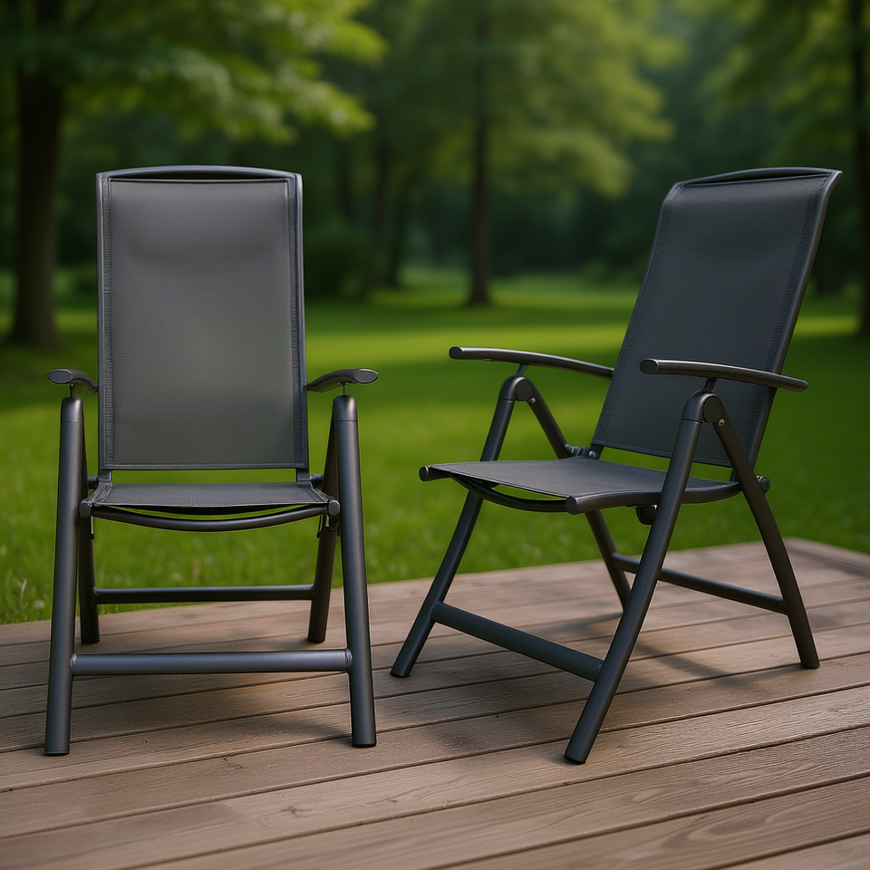 ชุดเก้าอี้ลานบ้านพับได้อะลูมิเนียม 2 ตัว ผ้าเท็กซ์ไทล์ ปรับพนักพิงได้ สำหรับตั้งแคมป์กลางแจ้ง ระเบียง ห้องรับประทานอาหาร