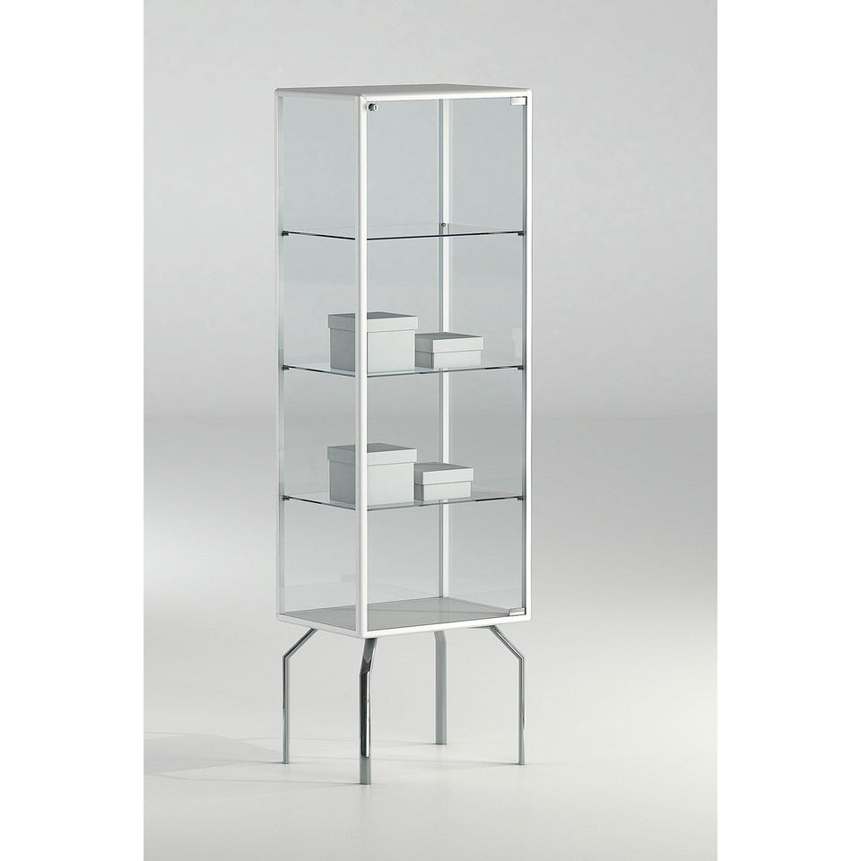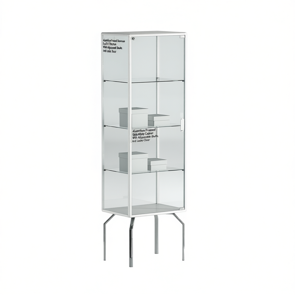 ตู้โชว์โครงอะลูมิเนียม 51x37x170 ซม. ตู้โชว์กระจกสีขาวพร้อมชั้นวางปรับระดับได้และประตูล็อคได้