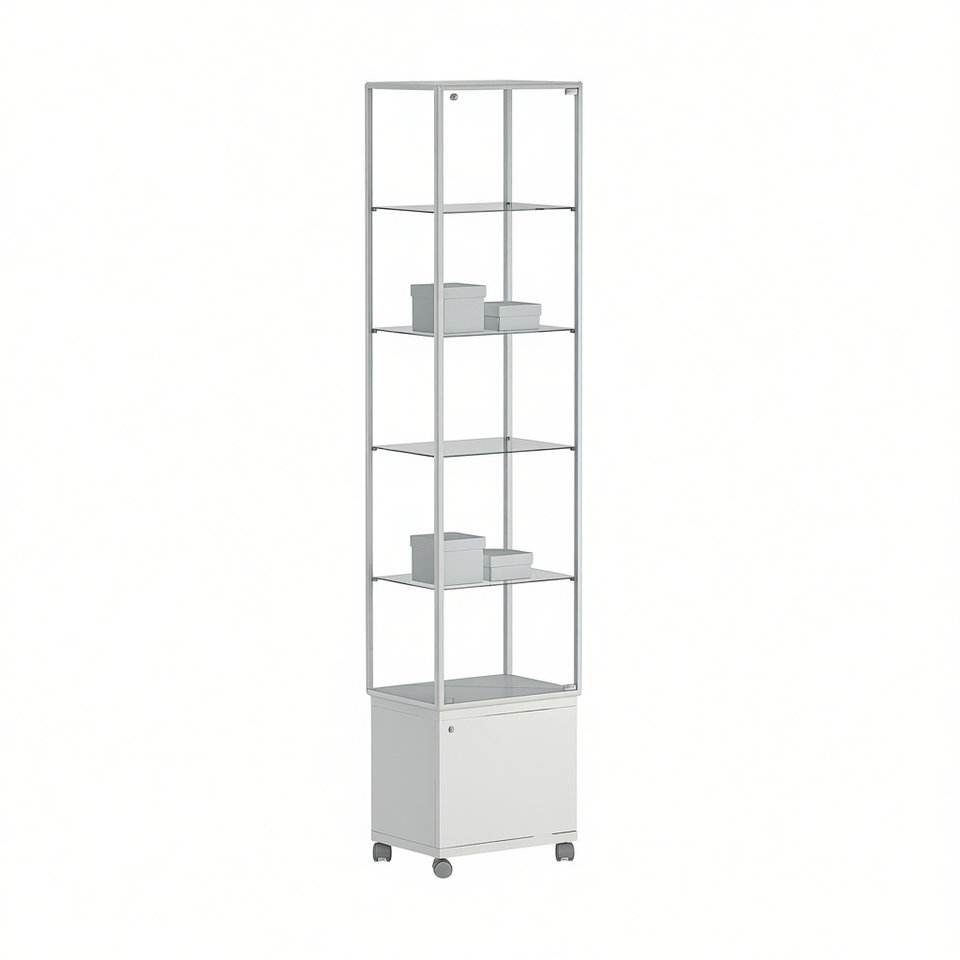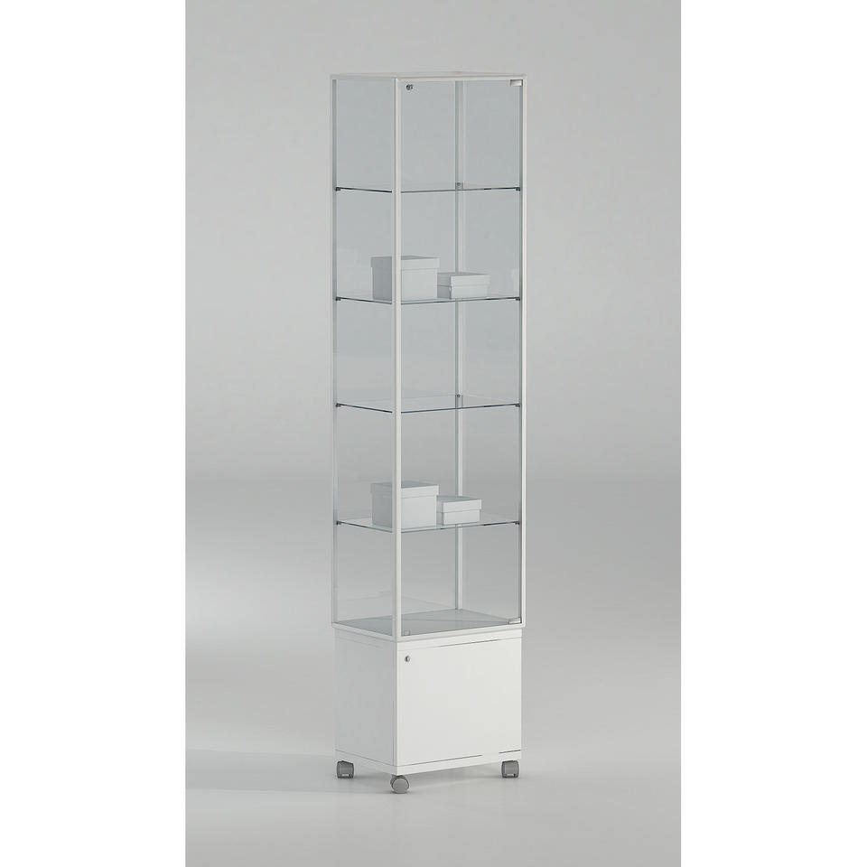 ตู้โชว์โครงอะลูมิเนียม 51x37x220 ซม. สีขาว พร้อมประตูล็อคได้และชั้นวางปรับระดับได้