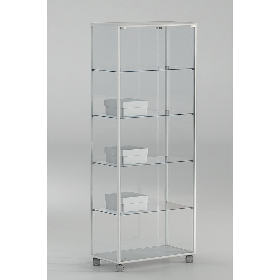 ตู้โชว์โครงอะลูมิเนียม 71x37x180 ซม. สีขาว พร้อมประตูล็อคได้ 2 บาน ชั้นวางปรับระดับได้ 4 ชั้น พร้อมล้อเลื่อน