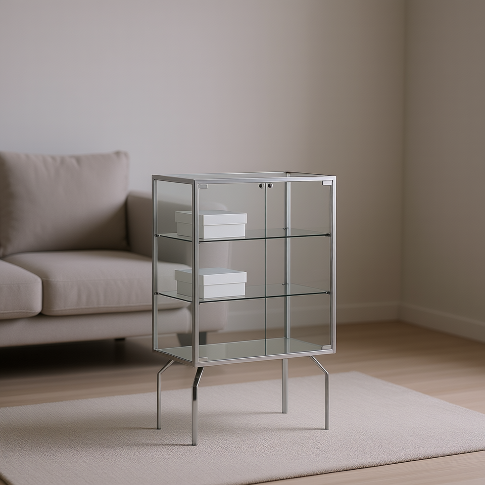 ตู้โชว์โครงอะลูมิเนียม 75x37x120 ซม. ประตูกระจกสีขาว พร้อมชั้นวางปรับระดับได้