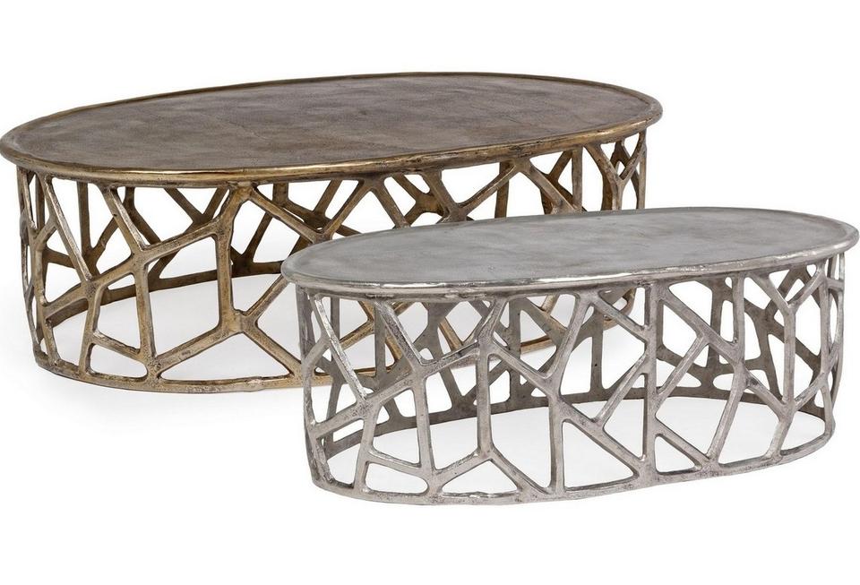 ชุดโต๊ะกาแฟอะลูมิเนียมสีทองสไตล์อาร์ตเดโค งานฝีมือโลหะ จำนวน 2 ตัว สำหรับใช้ในโรงแรม โดย MZ International