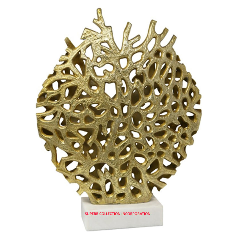 ประติมากรรมอลูมิเนียมสีทองสำหรับตกแต่งแบบศิลปะแนวนามธรรมที่ทันสมัยมีฐานหินอ่อน