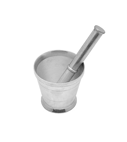 ครกบดและสากโลหะอะลูมิเนียมแบบมือเงาวาววาว