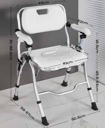 เก้าอี้อาบน้ำอลูมิเนียมปรับความสูงได้พร้อมที่วางแขนถอดออกได้สำหรับผู้สูงอายุ