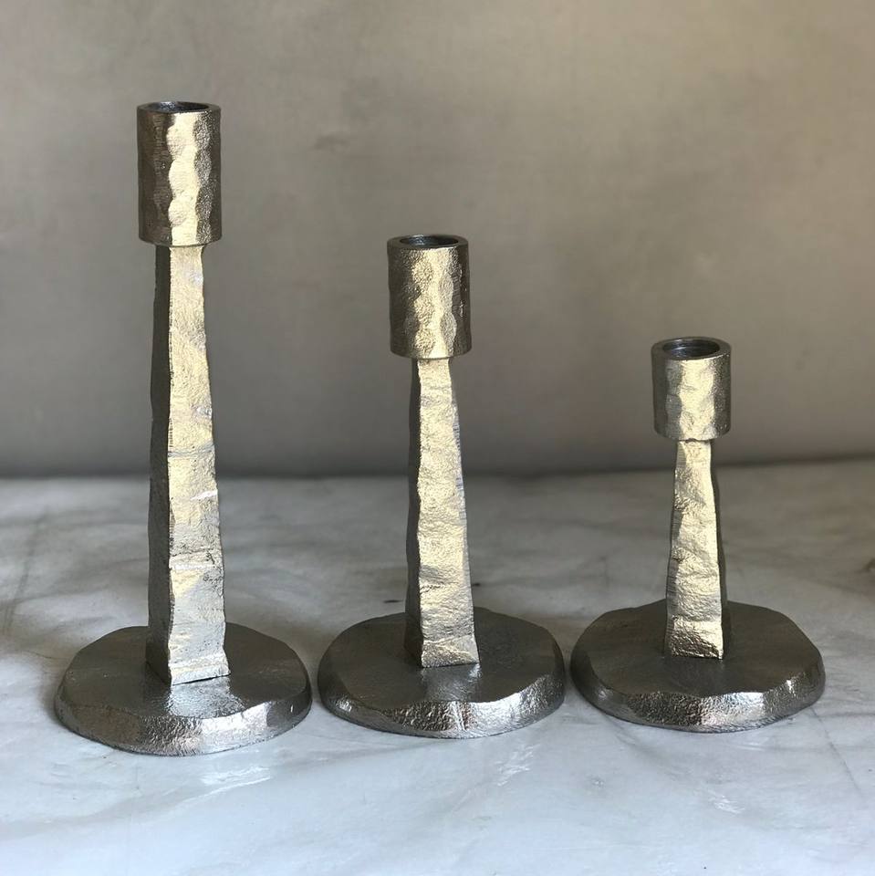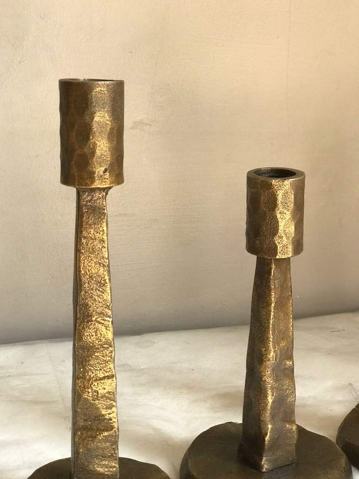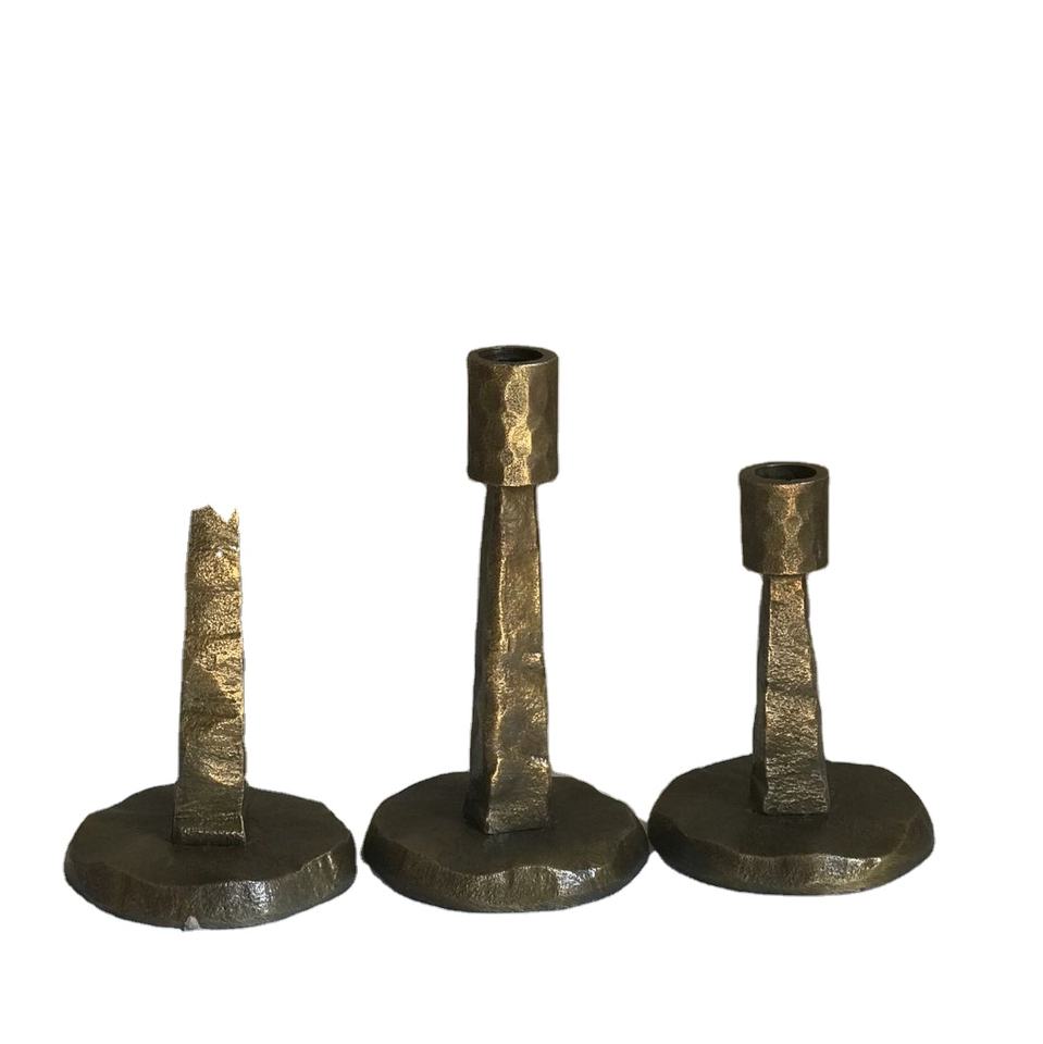อลูมิเนียม Hmmered ชุดเชิงเทียน3ชิ้น,เชิงเทียนทองเหลืองชนบทแบบใหม่ที่วางบนโต๊ะโบราณสำหรับตกแต่งงานเลี้ยงคริสต์มาส