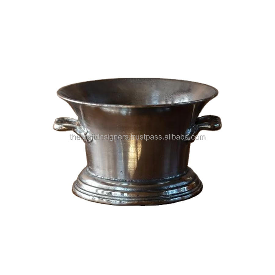 ถังน้ำแข็งอลูมิเนียมพร้อมที่จับทำด้วยมือโลโก้ออกแบบได้ตามต้องการตู้แช่ไวน์ขนาดใหญ่แบบพกพาสะดวก/ถังน้ำแข็งแชมเปญ
