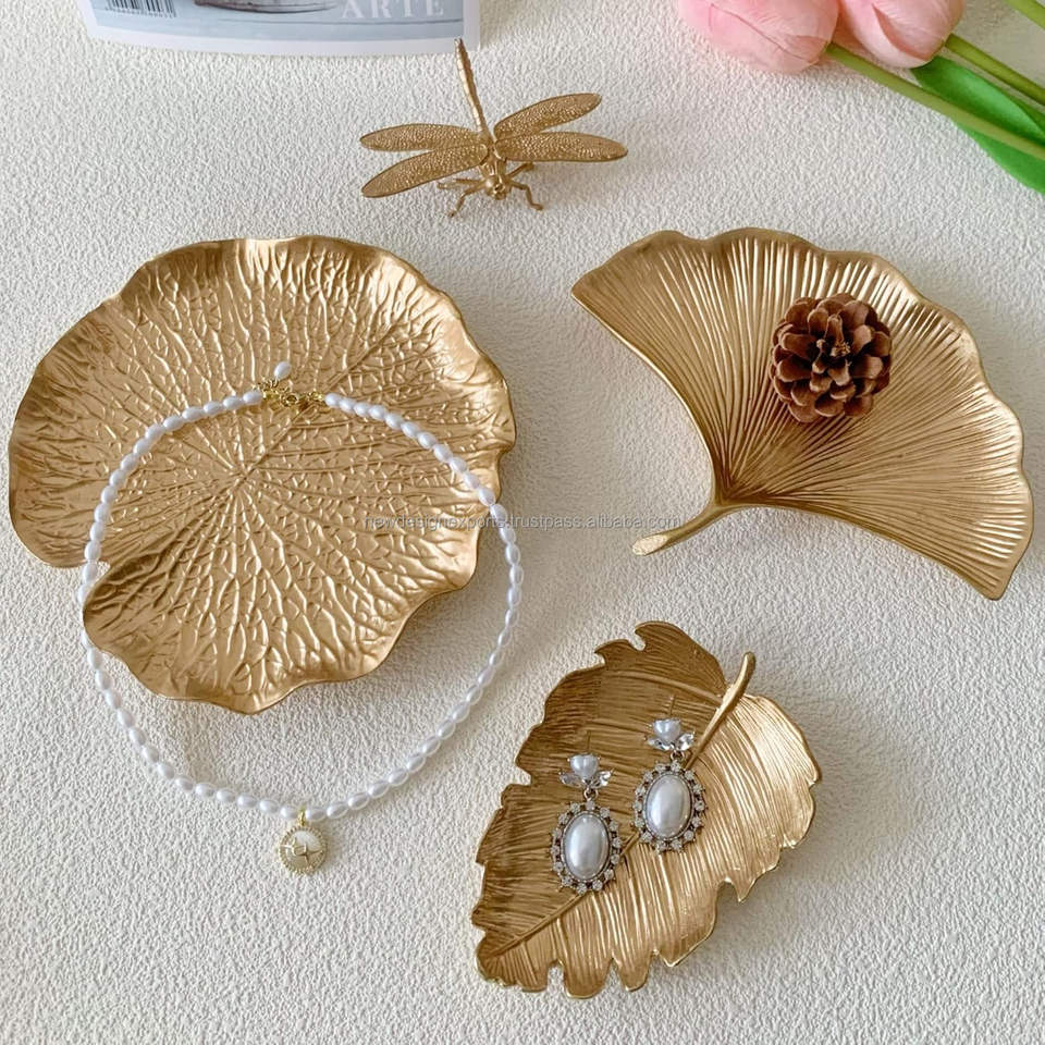 ถาดใส่ของตกแต่งงานฝีมือโลหะรูปใบบัวสไตล์อาร์ตเดโค ทำจากอะลูมิเนียม สีทอง ใช้ได้หลากหลาย สำหรับใช้ในบ้านและร้านอาหาร