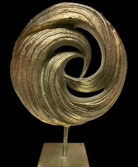 ประติมากรรมเกลียวอลูมิเนียมหรูหราสีทองแบบนามธรรมของตกแต่งบ้านที่ทันสมัยเครื่องประดับโลหะโต๊ะประติมากรรมขัดเงาที่ทันสมัย