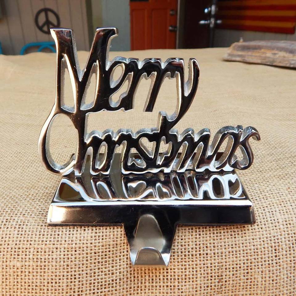 ที่ใส่สต็อคกิ้งสำหรับตกแต่งบ้านที่ใส่ของตกแต่งคริสต์มาสทำจากอลูมิเนียม Merry
