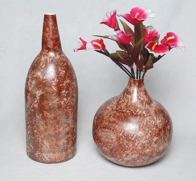แจกันดอกไม้อลูมิเนียมโลหะสไตล์โมเดิร์นพร้อมกระถางต้นไม้สีน้ำตาลสำหรับรับประทานอาหาร