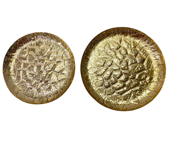 อลูมิเนียมโลหะทรงกลมอลูมิเนียมเสิร์ฟแผ่นสีทองจานและถาดสําหรับเสิร์ฟอาหารร้านอาหาร Handcrafted