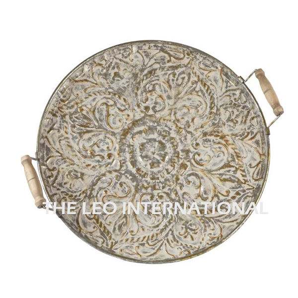 ฐานไม้อลูมิเนียมทรงกลมถาดเงินสไตล์แฟนซีหรูหราบ้านตกแต่งบ้านสุดหรู