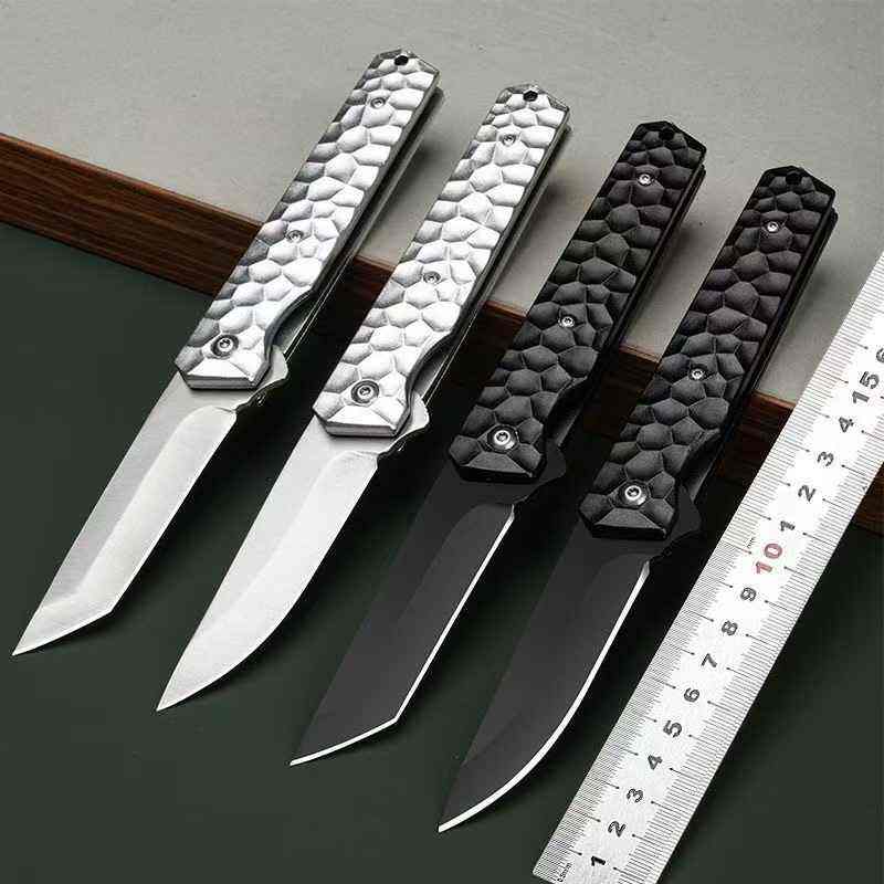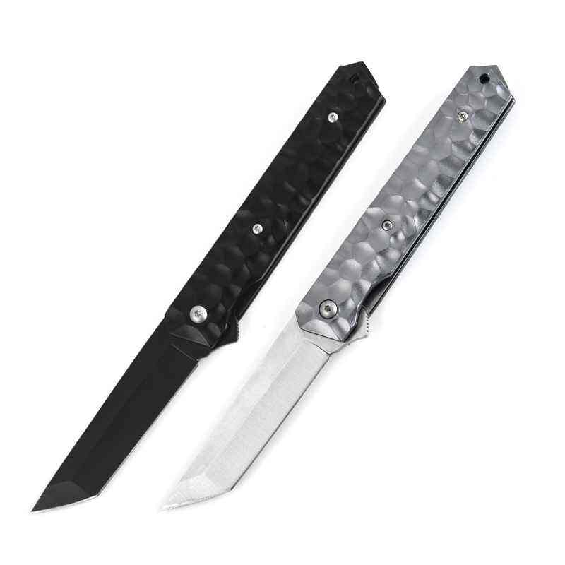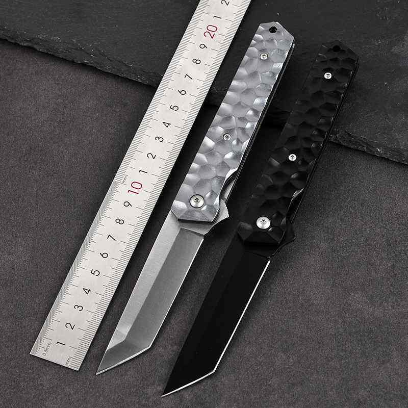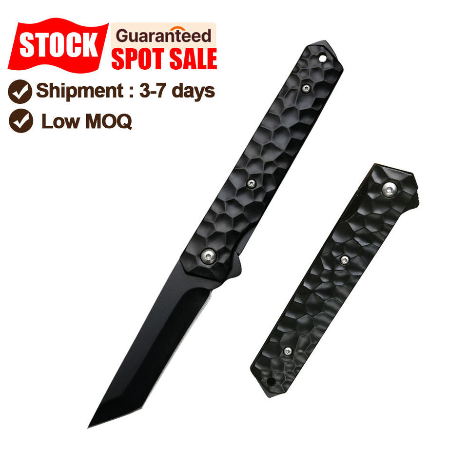 มีดพับใบมีดปลายแหลมแบบทาโต้ สำหรับตั้งแคมป์และเอาตัวรอด ทำจากอะลูมิเนียมออกไซด์สีดำ