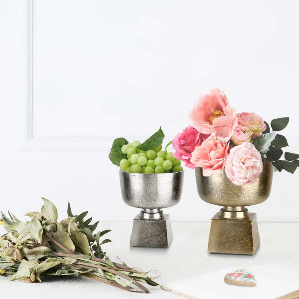 ชามอลูมิเนียมโบราณแบบฐานสีทองสำหรับใส่เครื่องดื่มชามอลูมิเนียมใช้สำหรับตกแต่งโรงแรมและร้านอาหาร
