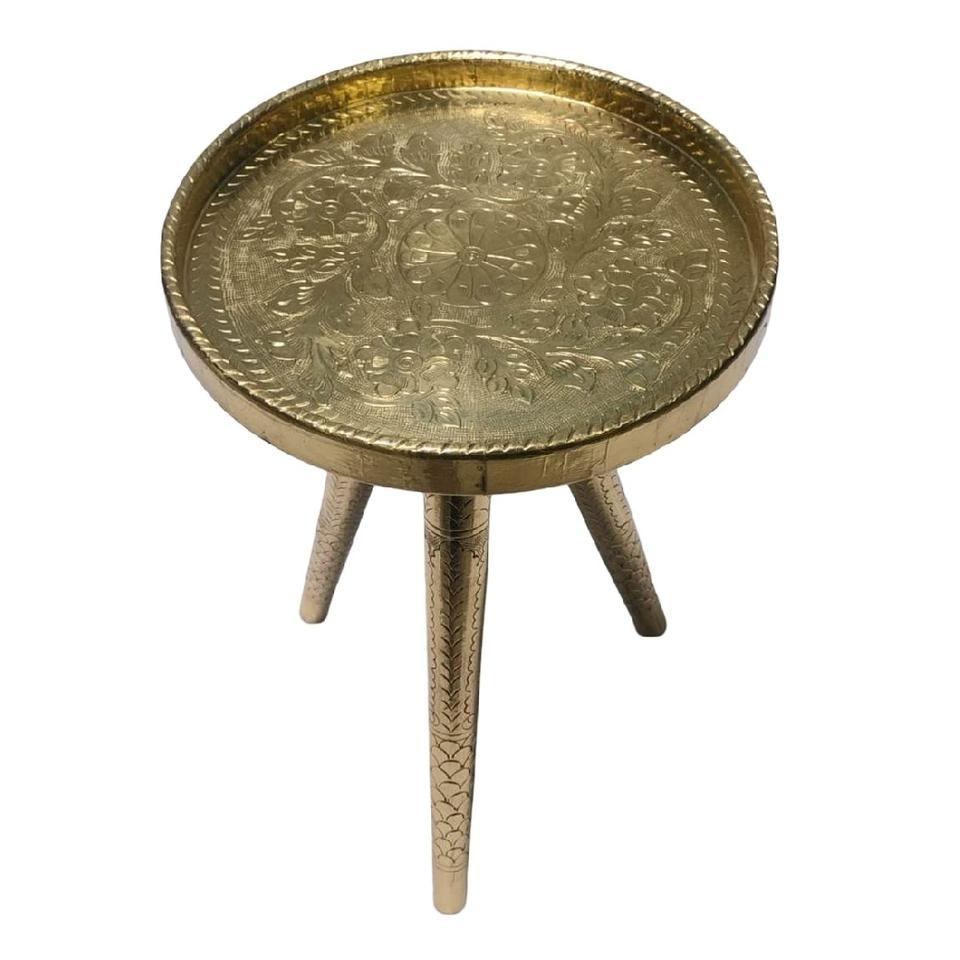 โต๊ะอลูมิเนียมทรงกลมสามขาลายนูนด้านล่างเป็นสีทองโต๊ะข้างหรือโต๊ะข้างสำหรับเฟอร์นิเจอร์บ้าน