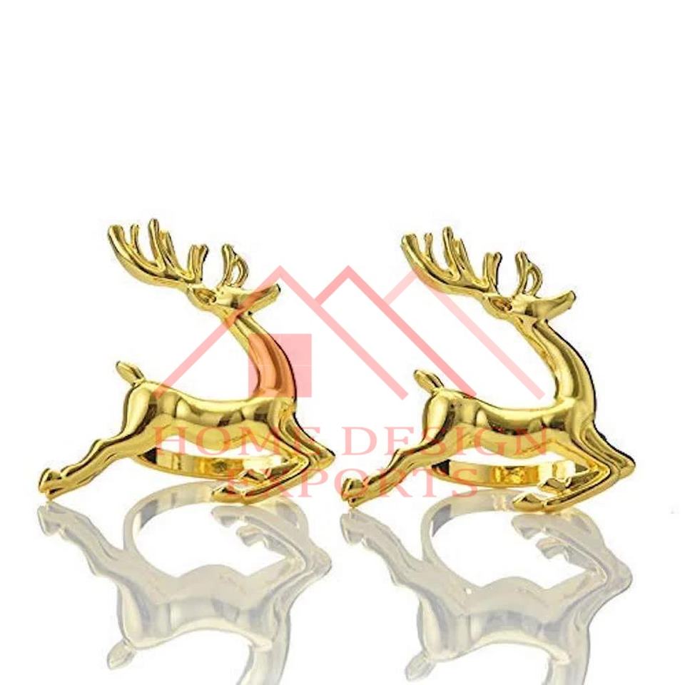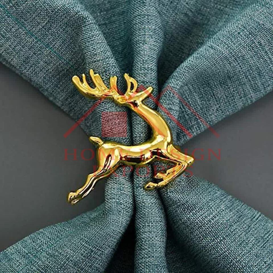 แหวนผ้าเช็ดปากทำจากอลูมิเนียมรูปกวางเรนเดียร์พร้อมห่วงรัดผ้าเช็ดปากสีทองประดับโต๊ะในบ้านโรงแรมและร้านอาหาร