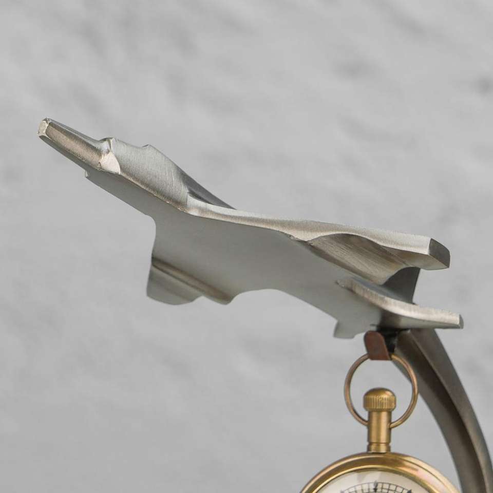 โมเดลเครื่องบินอะลูมิเนียมสีเงิน พร้อมฐานโบราณ แขวนด้วยเข็มทิศโบราณทองเหลือง ไอเดียของขวัญธุรกิจ ของตกแต่งสไตล์โมเดิร์น