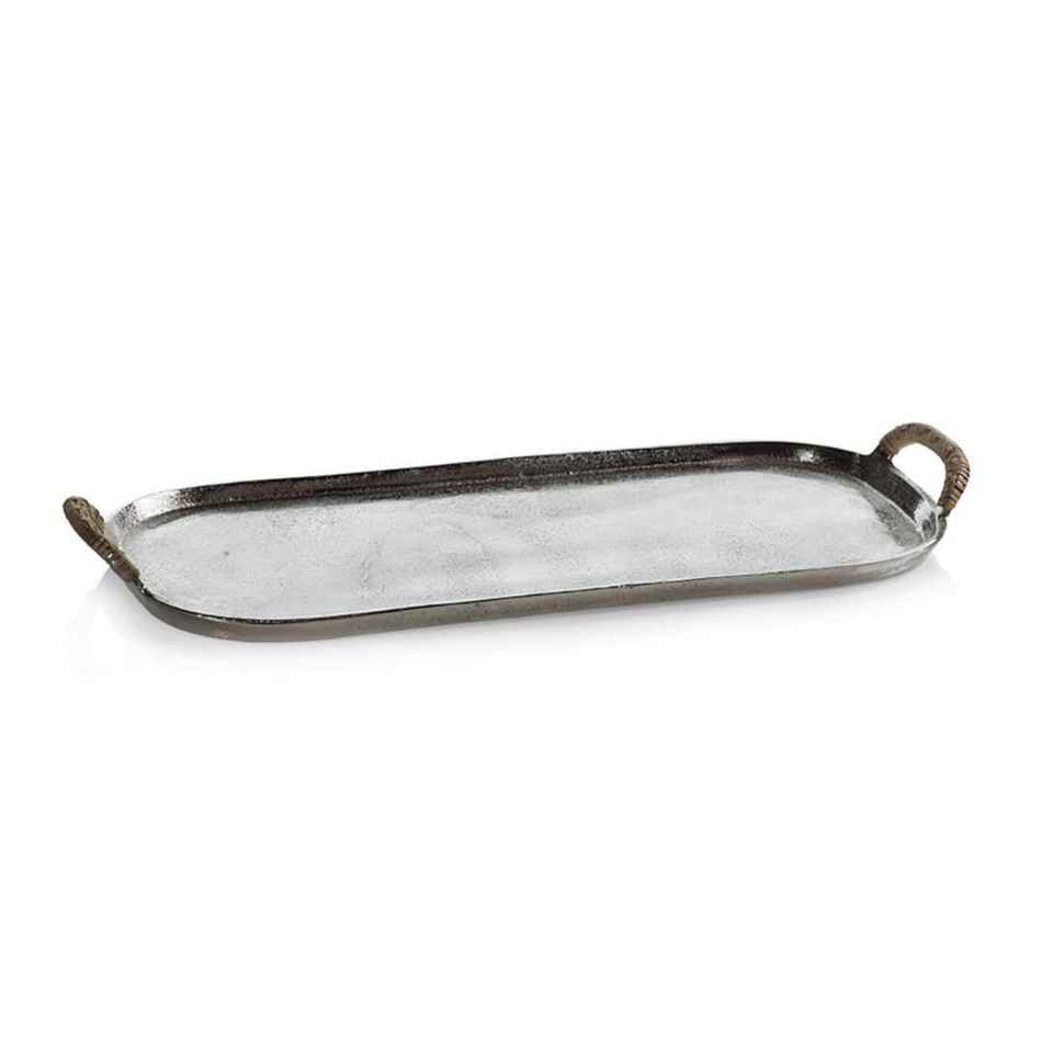ถาดเสิร์ฟอาหารพร้อมหูจับถาดเสิร์ฟอาหารอลูมิเนียมถาดโลหะสีเงินทรงสี่เหลี่ยมผืนผ้าสำหรับบ้านโรงแรม