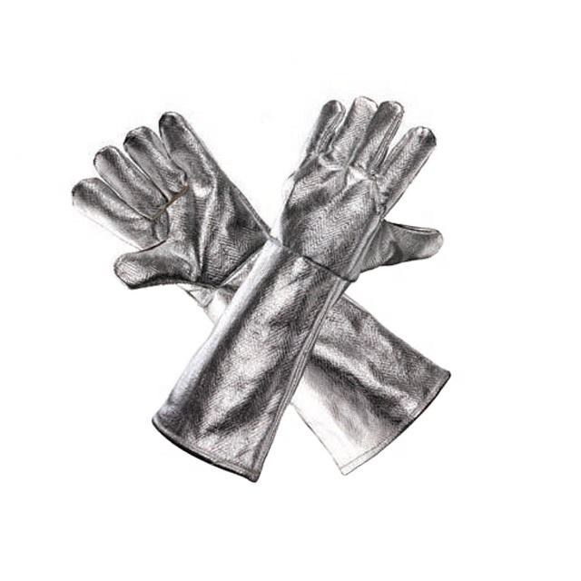 ถุงมือนิรภัยผ้าอลูมิไนซ์สำหรับงานเชื่อมทนต่ออุณหภูมิสูงทนทานอุปกรณ์ดับเพลิงผลิตจากผ้าอะรามิดตามสั่งไซส์ XL
