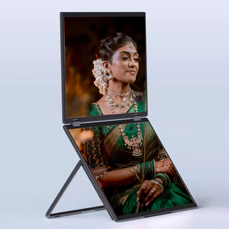 จอมอนิเตอร์แล็ปท็อปแบบพกพา FHD Type-C ขนาด15.6นิ้ว, จอมอนิเตอร์สำหรับเล่นเกมจอภาพคอมพิวเตอร์แบบ HD พับได้หน้าจอคู่