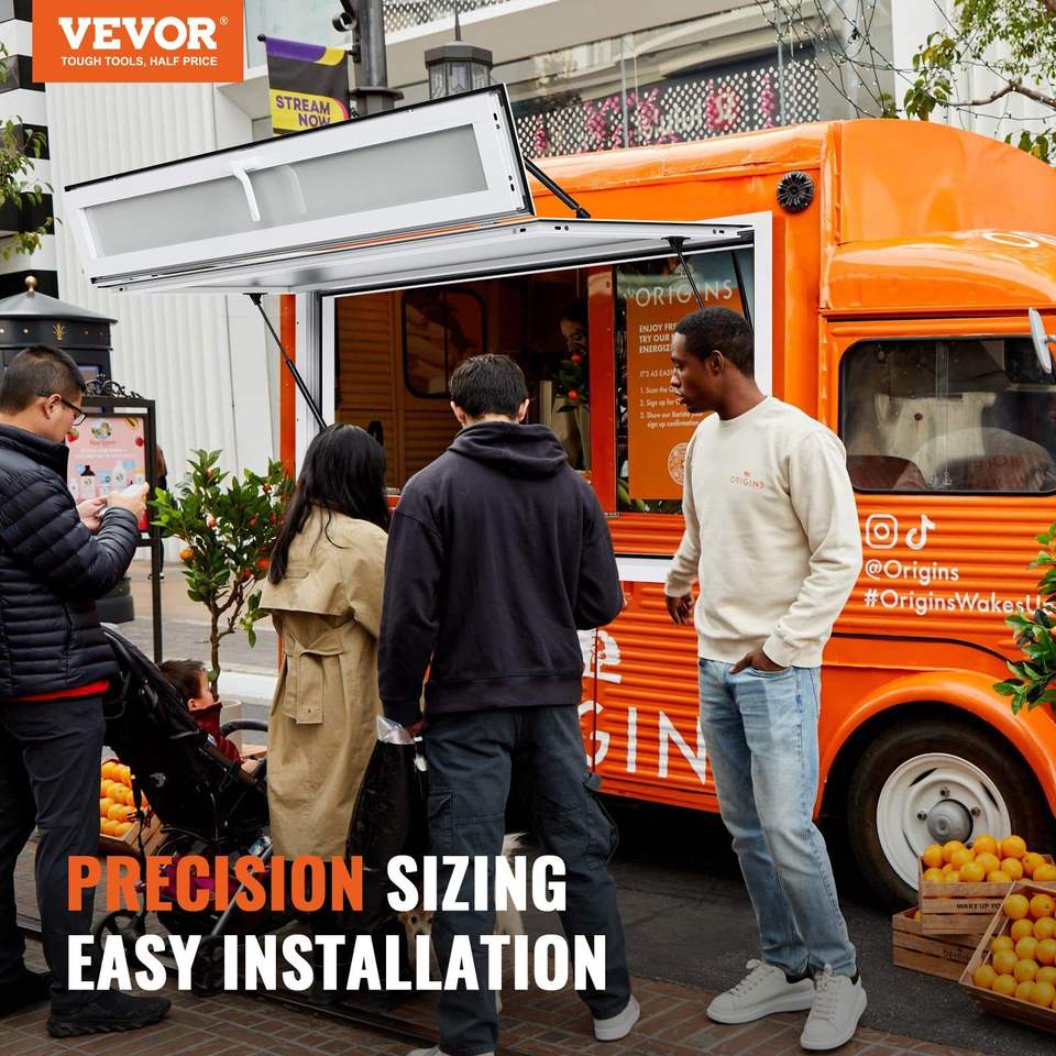 หน้าต่างอะลูมิเนียมอัลลอยด์ขนาด 60x36 นิ้ว สำหรับรถขายอาหาร แบบเลื่อนสามบาน พร้อมกันสาดและตะขอเกี่ยว