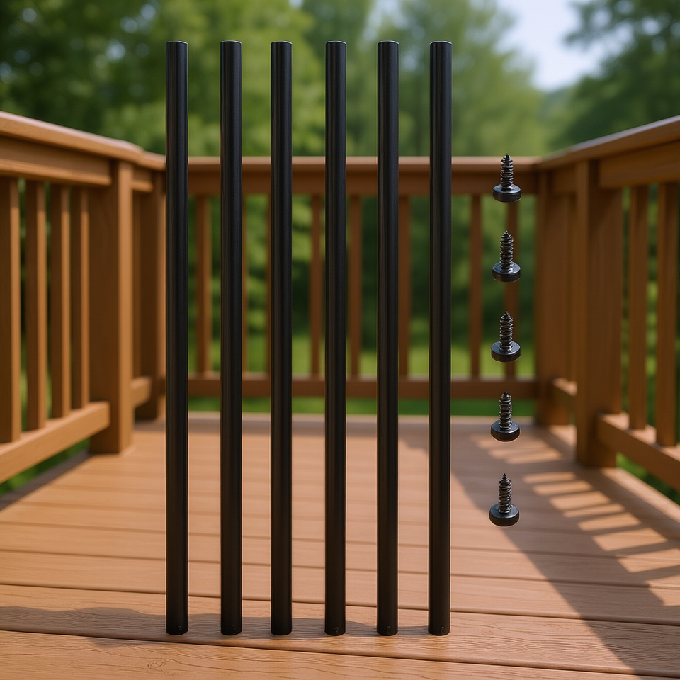 ราวบันไดอะลูมิเนียมอัลลอยด์ ขนาด 32 นิ้ว x 0.75 นิ้ว สำหรับระเบียงบันไดภายนอก พร้อมแกนไม้คอมโพสิต