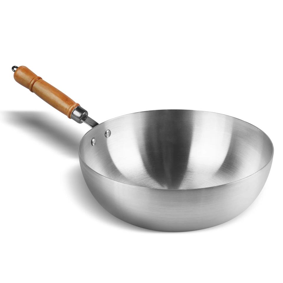 กระทะก้นลึก28ซม. คลาสสิกพร้อมด้ามไม้ฝาขัดเงาเป็นมิตรกับสิ่งแวดล้อมความหนา3มม. อลูมิเนียมอัลลอยด์สูง9ซม.