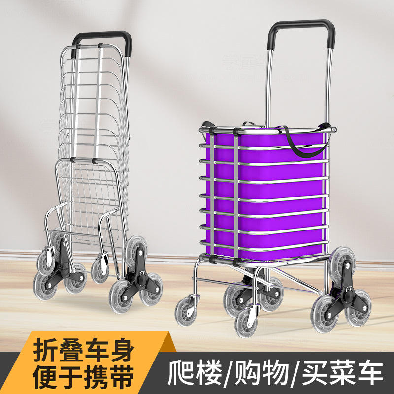 รถเข็นช็อปปิ้งแบบพับได้ ทำจากอลูมิเนียมอัลลอยด์ รถเข็นอเนกประสงค์สำหรับของชำและพัสดุ