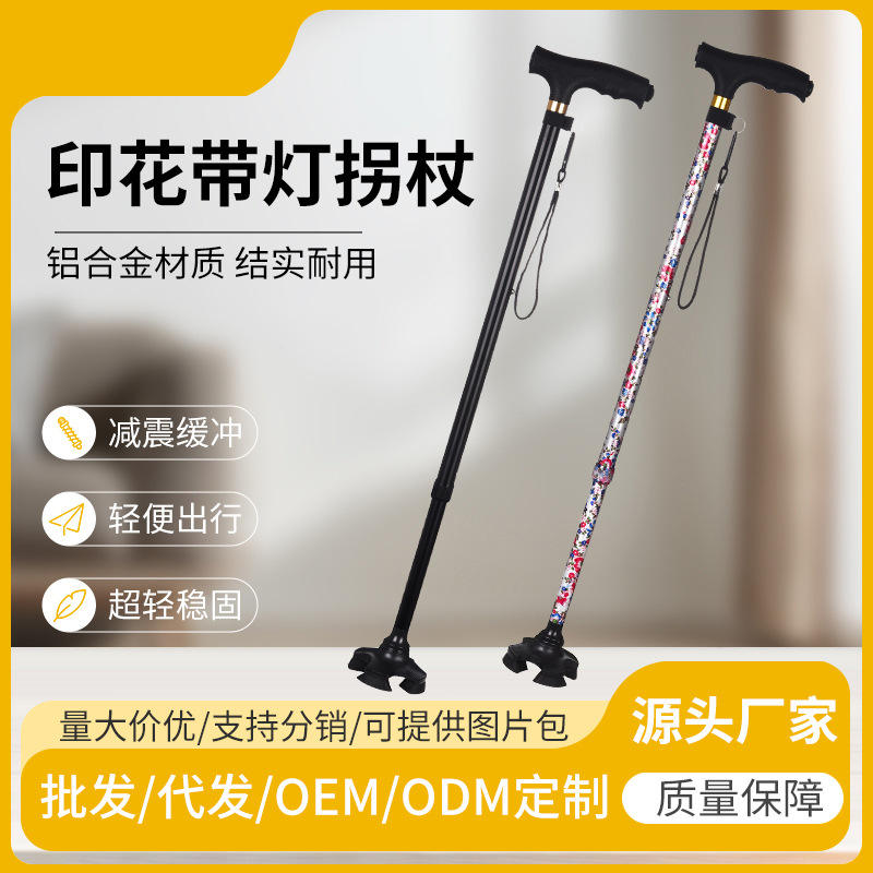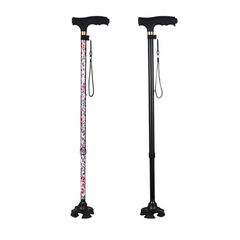 ไม้เท้าเดินป่าอลูมิเนียมอัลลอยด์พร้อมปลายยางกันกระแทก พิมพ์ลายสีดำ ไม้เท้าเดินป่ากลางแจ้ง ปรับได้สามส่วน