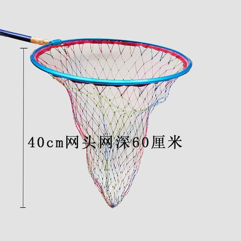 หัวตาข่ายอลูมิเนียมอัลลอยด์ ขนาด 50 ซม. รูปทรงสามเหลี่ยม ตาข่ายขนาด 6 ซม. ลึก 70 ซม. ตาข่ายไดนีมาสีสันสดใส อุปกรณ์ตกปลาความแข็งแรงสูง