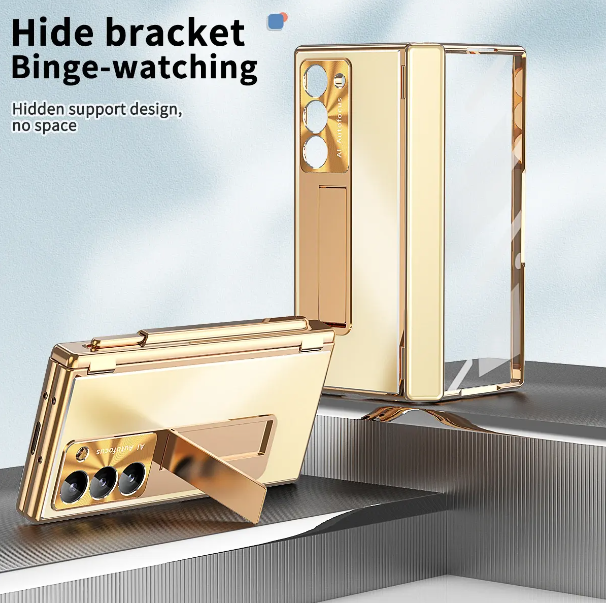 เคสโลหะผสมอะลูมิเนียมสำหรับ Samsung Z Fold 7 6 5 4 3 พร้อมฟิล์มกระจกป้องกันเต็มรูปแบบ ขาตั้งพับได้ ฝาปิดแบบธุรกิจ ชุบไฟฟ้า