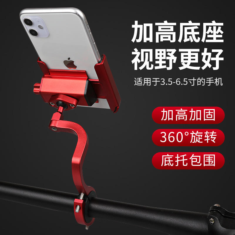 ที่วางโทรศัพท์มอเตอร์ไซค์อลูมิเนียมอัลลอยด์ปรับความสูงได้สำหรับโทรศัพท์ขนาด 3.5-6.5 นิ้วพร้อมการหมุนได้ 360 องศา