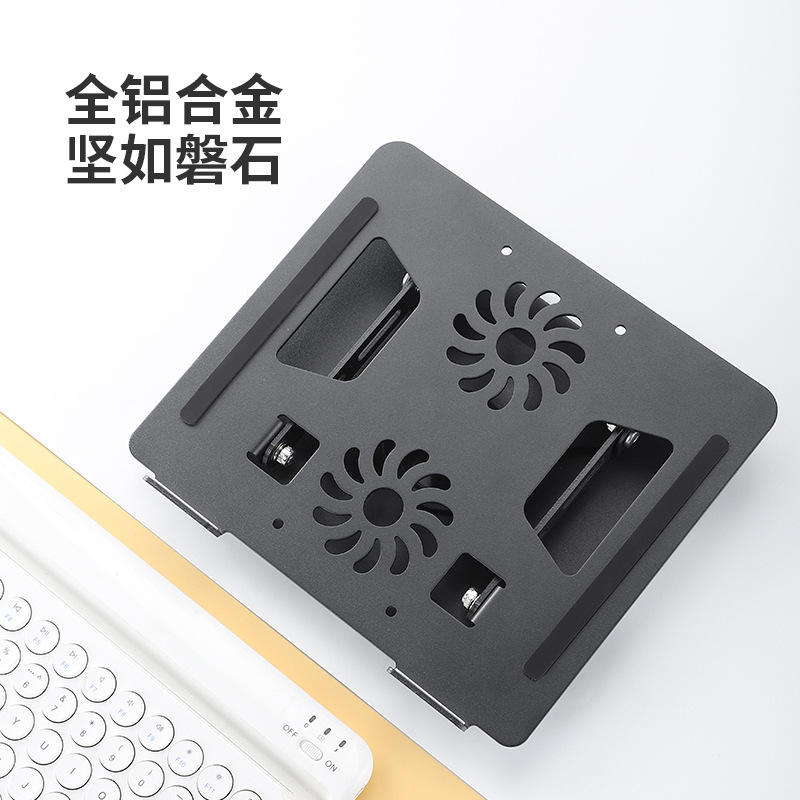 อลูมิเนียมอัลลอยด์ขาตั้งแล็ปท็อปแบบหมุนได้พัดลมคู่ปรับความสูงได้แผ่นทำความเย็นสำหรับแท็บเล็ตพีซี 21.7x25 ซม. สีดำ