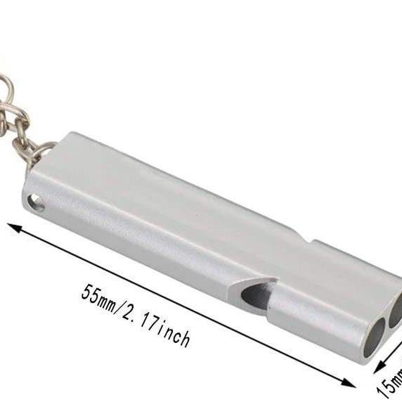 อลูมิเนียมอัลลอยด์นกหวีดเอาชีวิตรอดแบบสองกระบอกความถี่สูงเสียงดังพวงกุญแจอุปกรณ์ความปลอดภัยฉุกเฉินกลางแจ้งสีเงินสีทอง